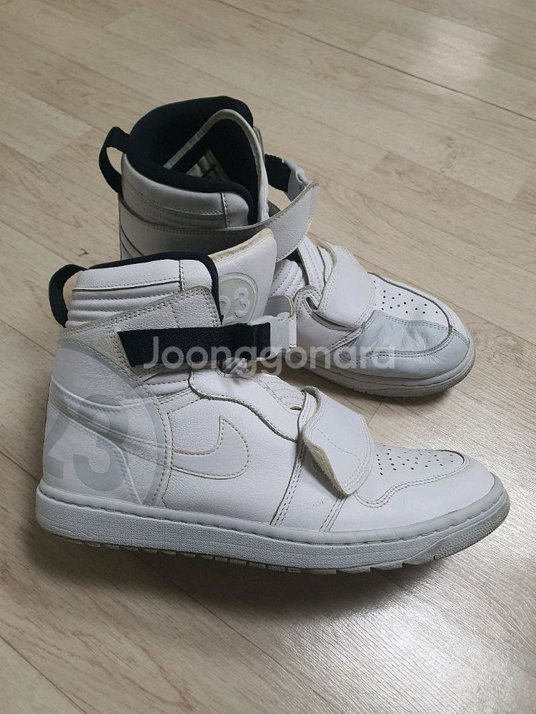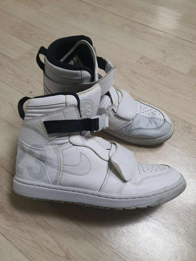 생활사용감 조금 말고는 전체적인 컨디션 좋습니다 디자인 이쁘고 편하고 핏좋아요 세탁완료 하였습니다 깔끔하게 신어세요 나이키 에어 조던 1 모토 농구화 300사이즈입니다. 흰색이라 코디하기도 편하고, 농구할 때 신어도 좋아요. 벨크로로 되어있어 신고 벗기도 편합니다.