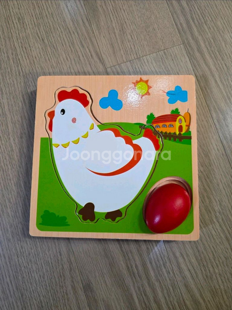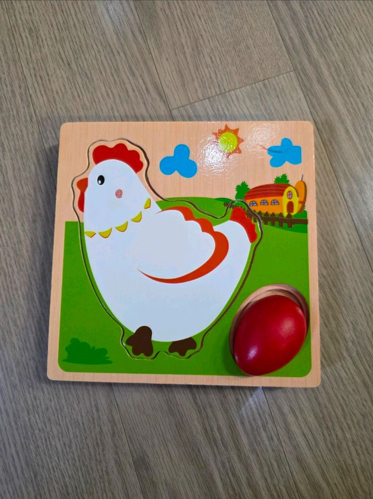 아기용 3D 퍼즐이에요. 닭과 계란 모양으로 되어있어서 아이들이 좋아할 것 같아요. 상태는 양호한 편입니다.