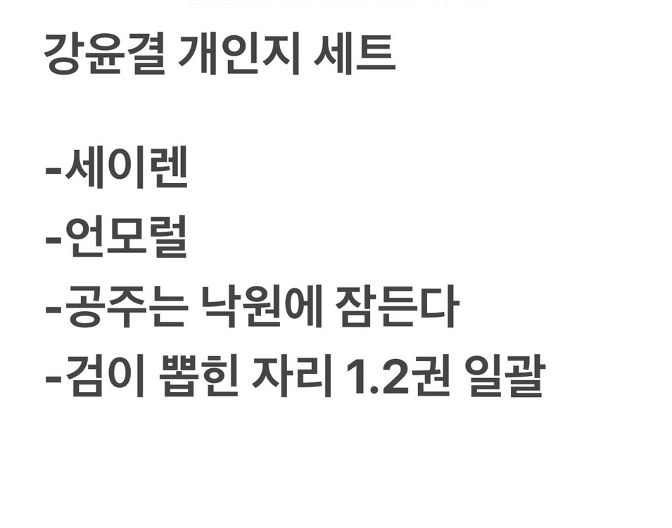 강윤결 개인지 세트 -세이렌 -언모럴 -공주는 낙원에 잠든다 -검이 뽑힌 자리 1.2권 일괄 안전 결제 가능합니다:) 주중 우체국 택배 발송