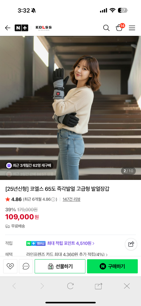 새상품 코엘스 발열장갑이에요! 65도 온도로 즉시 발열되는 고급형 제품으로 겨울철 필수템입니다. 단순 작동확인품입니다 우체국 택배발송드려요