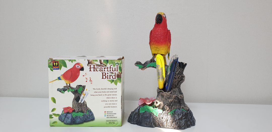 노래하고 춤추는 댄싱 앵무새 장난감입니다 ~ 미개봉 새상품 입니다 3개 보유중 - 높이 약 18.5cm - AA 배터리 3개 사용 - 연필꽂이로 사용 가능 - 구매 가격은 14,500원입니다 https://www.coupang.com/vp/products/8436483517