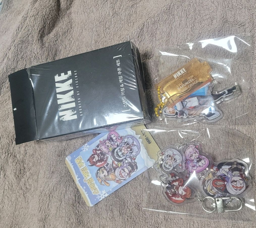 [판매] 두찜x니케 NIKKE 콜라보 스탠드 키링 세트 일괄 사진을 찍기 위해 개봉만 했어요 키링 2종 + 쿠폰 같이 드립니다 환불 불가 합니다