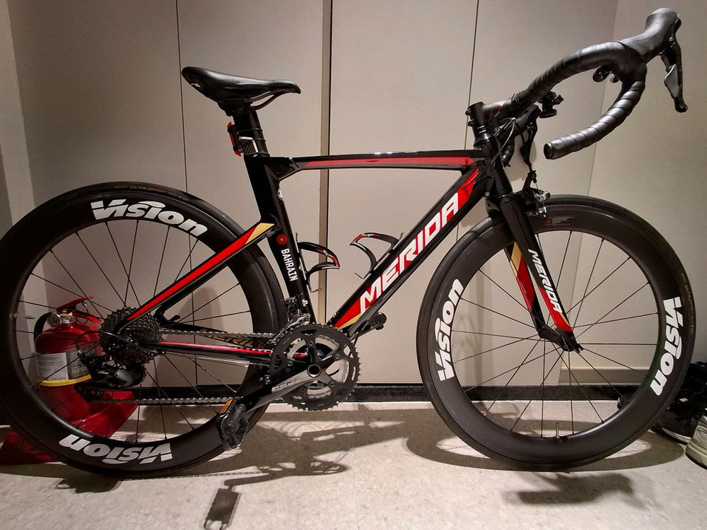 메리다 리엑토 400 팀바레인 xs 로드자전거입니다 엘리트 60림 카본휠셋 울테그라 림브레이크 교환 크랭크 체인링교체 스프라켓 교체 하였습니다 다만 프론트 휠에 스포크가 뿌러지며 휠안쪽으로 들어가 움직일때 쇠소리가 납니다 자전거점가서 빼셔야할 것 같습니다