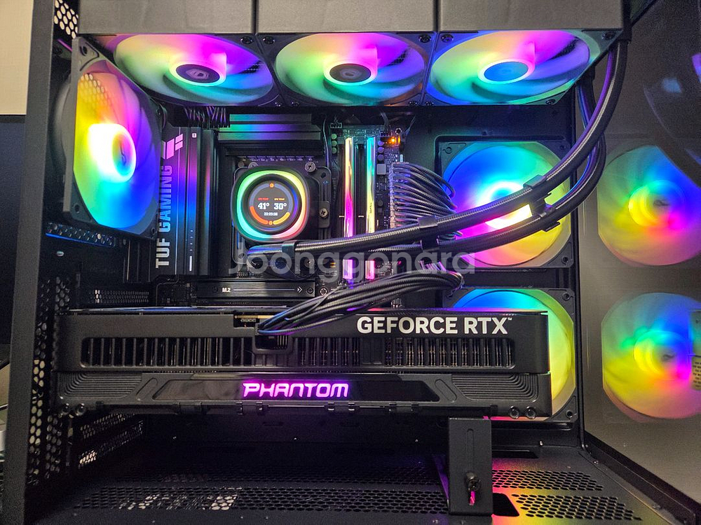 AMD 라이젠7-6세대 9800X3D (그래니트 릿지) ID-COOLING FX360 LCD 데이븐 3열 Black 수냉 (스킨 변경 가능) ASUS TUF Gaming B850M-PLUS Wifi DDR5 G.SKILL DDR5-6000 CL36 TRIDENT Z5 RGB J 32GB(16Gx2) GAINWARD 지포스 RTX 5080 팬텀 D7 16GB eKitStor Xtreme 200E M.2 NVMe SSD 1TB (4세대 속도빠름) darkFlash DS500 RGB Black Case 맥스엘리트 MAXWELL DUKE 1300W 80PLUS ATX PLATINUM Full Modular 12VHPWR Cable 지원 Windows 11 pro 바로 가져가서 쓰실수 있게 말끔하게 세팅해놨습니다. 조립후 세팅 및 테스트만 거친놈이기에 새상품급이라고 보셔도 됩니다. 거래내역 보셔도 신뢰는 가실겁니다. 동급 사양 이가격 이정도 부품 퀄리티 없으실겁니다. 추후 글카 5090 가격 떨어져서 업글하실때에도 파워도 넉넉하고 부족함이 없으실 겁니다. 무조건 직거래만 하겠습니다. 서울,파주,인천,의정부,일산,잠실,강남,용인,수원등 수도권 전지역 직거래 합니다. 가져다 드릴수 있습니다. 연락주세요.