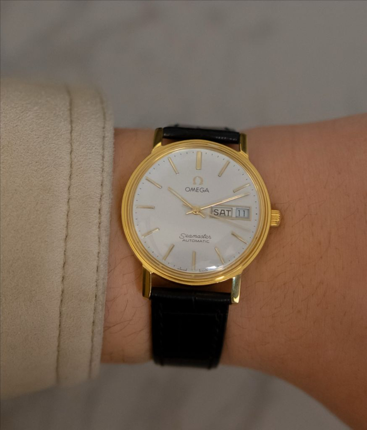 ■ 기본 정보 • 라인: Seamaster • 무브먼트: 오토매틱(Automatic) • 기능: 데이·데이트(Day-Date) • 케이스: 골드 톤 케이스 • 다이얼: 실버 다이얼 • 구성품: 시계 본품 • 시계크기: 35mm ⸻ ■ 씨마스터 라인의 특징 씨마스터는 오메가의 대표적인 클래식 라인으로, 내구성과 실사용성을 모두 갖춘 모델군입니다. • 드레스 워치와 데일리 워치의 균형 • 깔끔한 디자인과 안정적인 무브먼트 • 오메가 빈티지 라인업 중 가장 활용도가 높은 시리즈 ⸻ ■ 데이데이트 기능의 희소성 해당 모델은 일반적인 데이트 모델이 아닌 요일·날짜가 동시에 표시되는 데이데이트 구성입니다. • 요일/날짜 동시 표기로 실사용 편의성 우수 • 빈티지 오메가 중 데이데이트 모델은 상대적으로 매물이 적음 • 클래식한 디자인에 기능성이 더해진 구성 ⸻ ■ 골드 톤 케이스의 클래식한 매력 • 따뜻한 색감의 골드 톤 케이스 • 실버 다이얼과의 대비로 고급스러운 인상 • 정장, 셔츠 착용 시 특히 잘 어울리는 스타일 ⸻ ■ 이 모델이 매력적인 이유 • 오메가 대표 라인 씨마스터 • 데이·데이트 기능을 갖춘 실사용성 높은 빈티지 • 클래식한 골드 톤 케이스 디자인 • 부담 없이 착용 가능한 정통 빈티지 드레스 워치 ⸻ ■ 거래 조건 • 경기도 구리 직거래 • 택배 · 퀵 거래 가능 • 네고 문의는 받지 않습니다