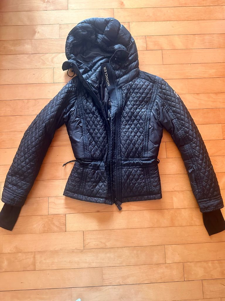 스키복 라인으로 나온 몽클레어 정품 여성용 다운 패딩입니다. 블랙 컬러에 다이아몬드 퀼팅 디자인이 고급스러워요. 55맞아요