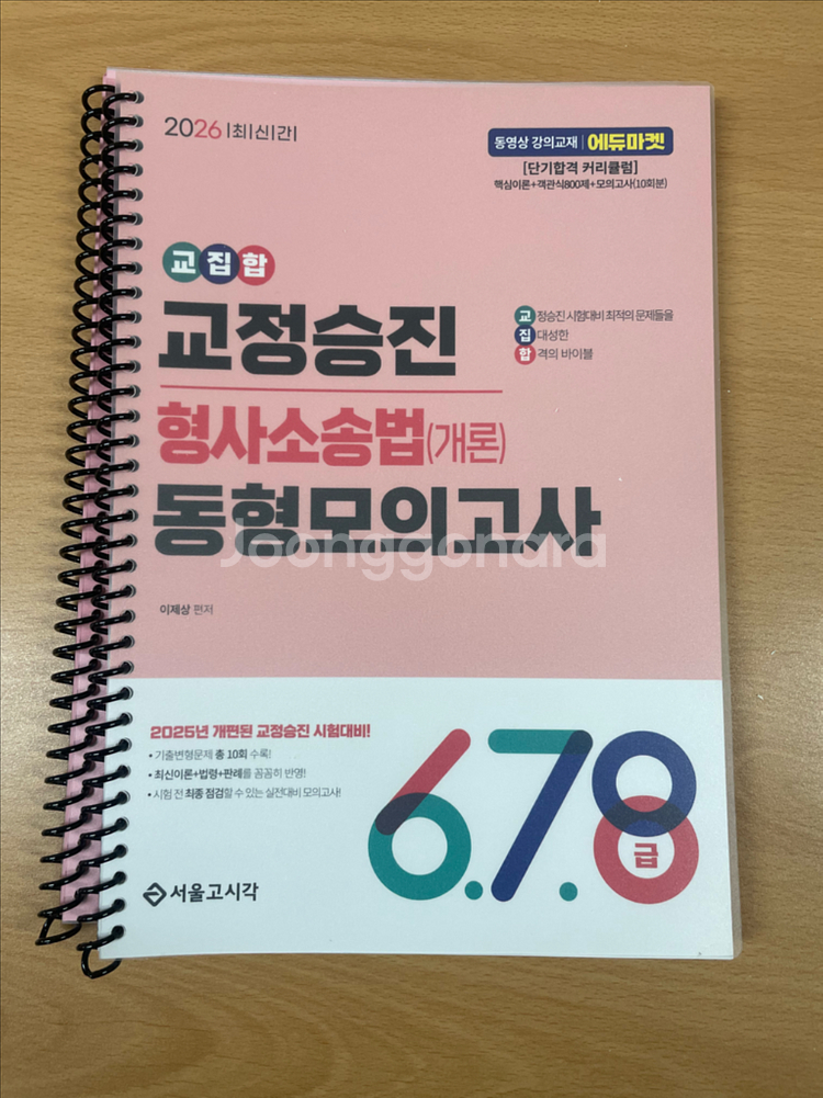 2026년 교정승진 시험 대비 형사소송법 동형모의고사입니다. 스프링 제본으로 되어있어 공부하기 편리해요. 형사소송법 시험 준비하시는 분께 추천드립니다.