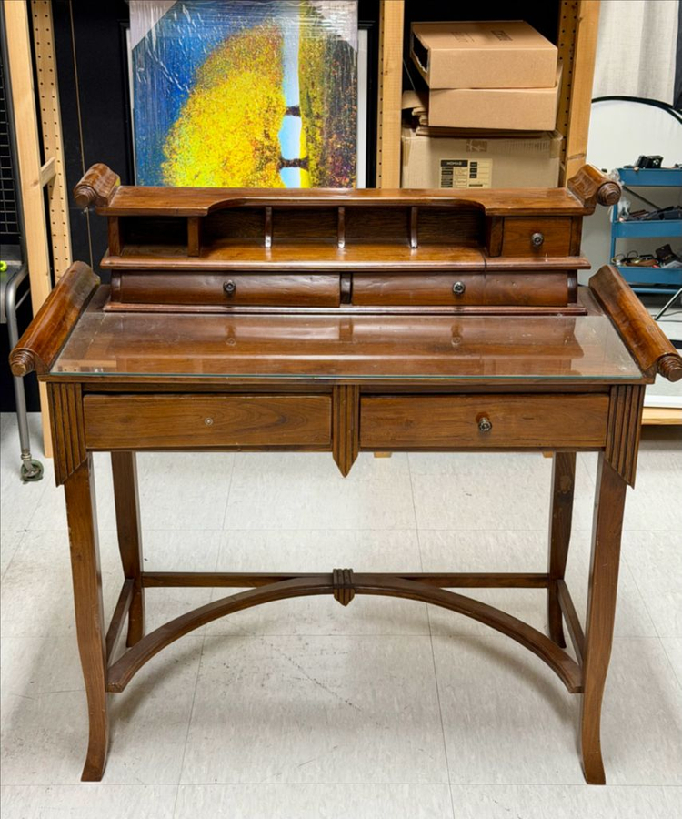 ✔️구매시기 : 3-4년전 ✔️ 제품 사이즈(단위 cm) 가로 약 97 높이(낮은쪽) 약 77 높이(높은쪽) 약 97 깊이 약 48 ✔️설명 악세사리 매장 진열대 용도로 구매한 엔틱 가구입니다 엔틱 가구 매장에서 50만원 정도에 구매했던 기억이 있습니다. 유리 상판이 있어 오염과 스크래치 걱정이 없고, 다양한 서랍이 있어 수납력도 좋습니다. 제품 상태는 사진 원본 그대로 올렸으니 확인 부탁드립니다. 크기는 좀 큰 SUV에는 들어갈거 같은데 사이즈 잘 보시고 직접 가저가져 가시거나 용달 불러 주시면 실어서 보내드릴 수는 있습니다. 감사합니다.
