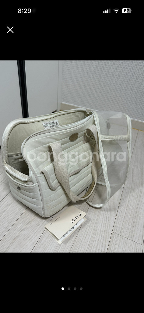 서루 발롱백 스몰 사이즈입니다 (~4kg) 밝은 색상이다 보니 이염이 좀 있습니다 사진엔 없지만 쿠션도 같이 드려요! (꽃무늬 패턴, 조금 이염있음) 보증서 같이 드립니당! 반택포함