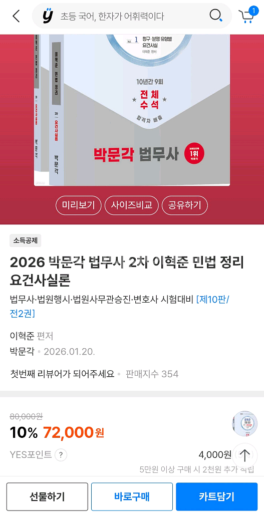 2026년 법무사 2차 수험서 3권 및 고래별 6권 도서 30% 할인 받아 대리 구매 원합니다.