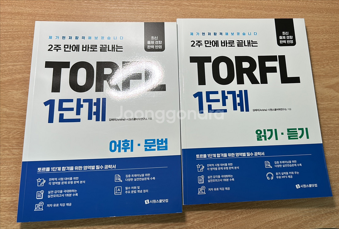 사놓고 사용한 적 없습니다 새 책 상태예요 각 한 권당 정가 25천원에서 16천원으로 팔아요 **한 권만 구매 가능합니다 토르플 1단계 어휘문법과 읽기독기 교재 2권