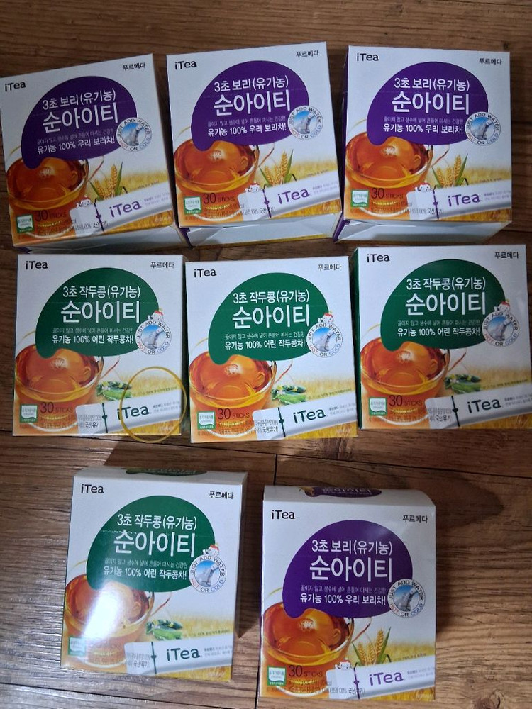 푸르메다 iTea 유기농 순아이티 3초 보리차와 작두콩차입니다 - 3초에 우려 마실 수 있는 간편함이 특징입니다 - 유기농 100% 국내산 원료를 사용했습니다 - 보리차는 2027년 10월, 작두콩차는 2026년 11월까지입니다 인터넷엔 1통 가격이 비싸게 판매되고있어요 유기농이라 아이들한테 진짜좋아요 1통에 30포입니다 8통 240포입니다 공일 공 팔이 공육 육일 사칠 ㅁㅈ주세요
