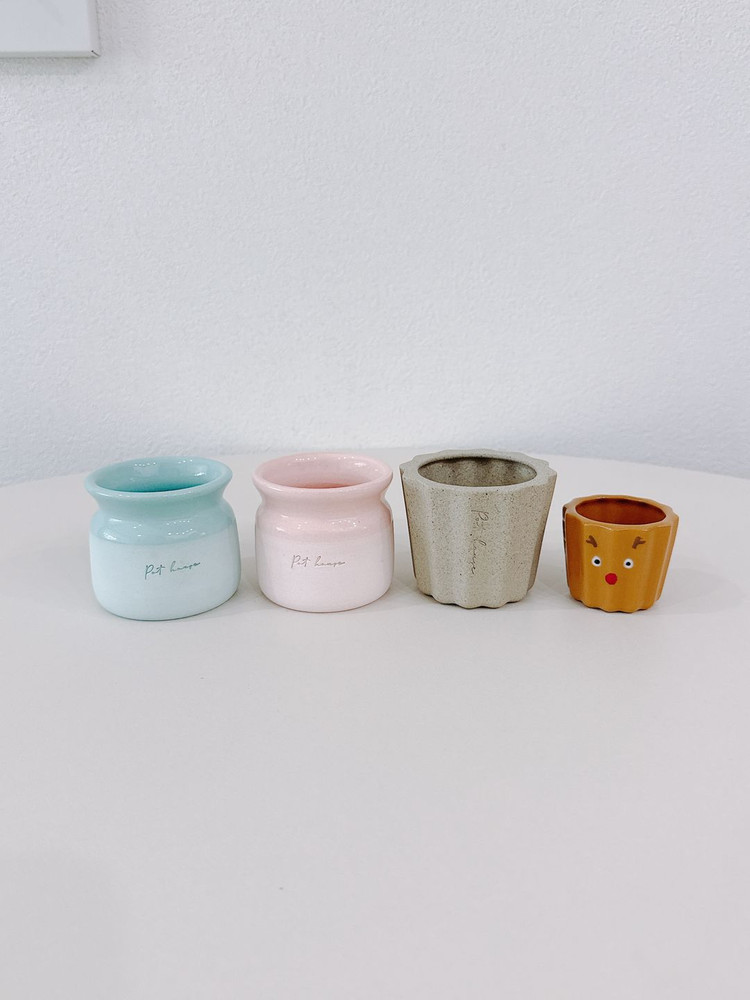 왼쪽 푸딩팟 2개는 사용팟이고 오른쪽 킹까눌레와 까눌레는 미사용팟입니다 일괄판매로 보내봅니다 파손면책 동의하에 우체국 택배로 발송해드립니다 상점 내 다른 화분과 묶음 배송 가능합니다!