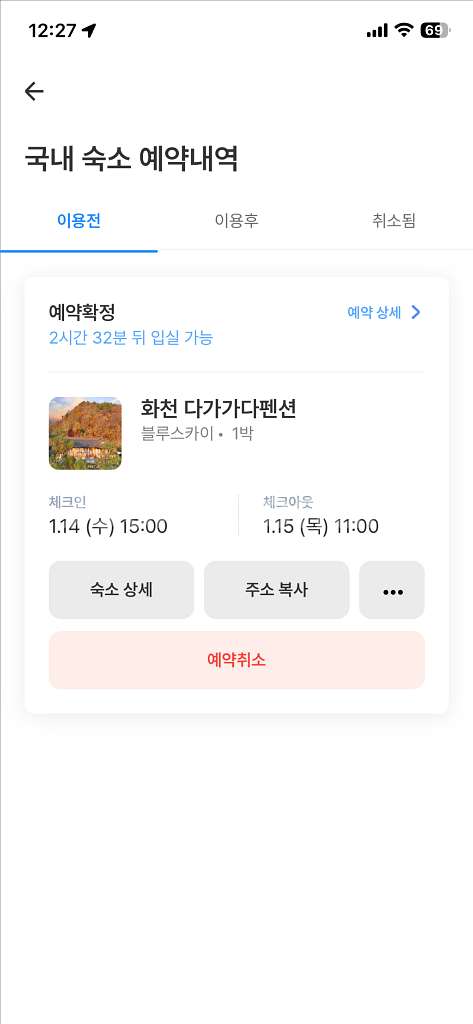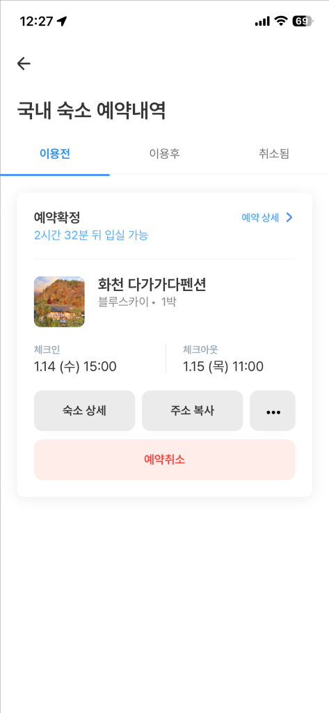 개인정보(거래정보)를 주고받는 행위는 사기에 노출될 수 있으므로 즉시 중고나라로 신고해 주세요다가가다펜션 1월 15일 예약 양도합니다. 3인 1박 이용 가능하고 좋은 위치의 숙소예요!