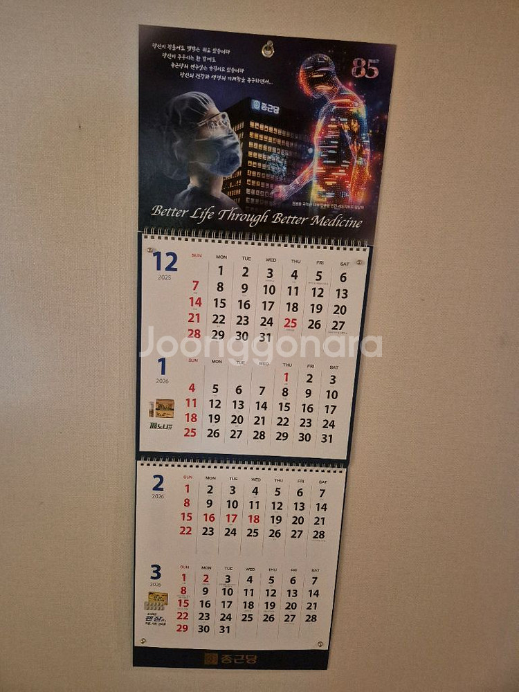 2026년 종근당 벽걸이 달력 문자 주세요. 공일공 팔일공구 구삼오칠