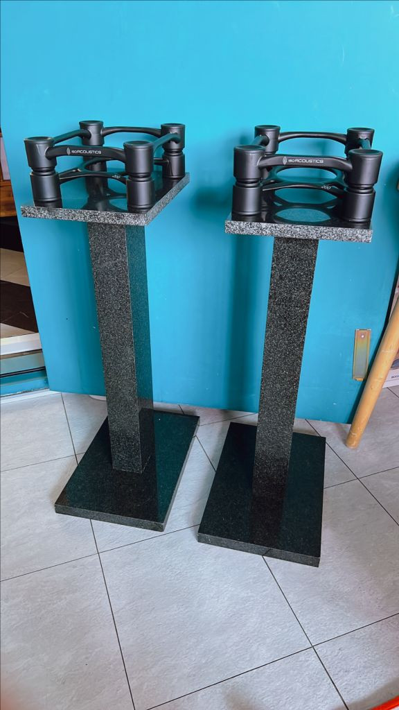 스피커 스탠드 2개 1조입니다. 화강암 재질로 만들어져서 그 어떤 스탠드보다도 튼튼하고 안정적입니다. 단단하고 무거워서 흔들림,진동 제로입니다. 매물이 없어서 구하기도 힘들며 직접 제작하시려면 훨씬 비싼 금액이 듭니다. 사이즈 높이: 64.5cm 밑판: 약 24cm x 36cm 윗판: 약 20cm x 30cm *위에 올려진 IsoAcoustics Aperta 200는 제외입니다.