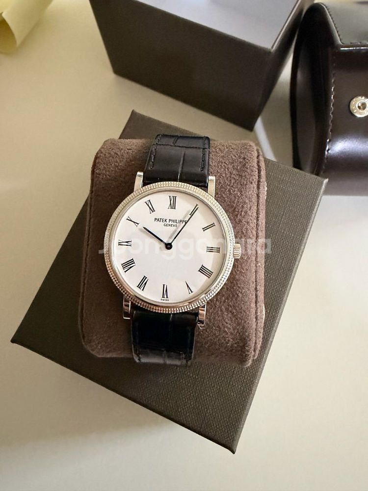 파텍 필립 칼라트라바 5120G 35mm/버클을 포함한 케이스 화이트골드 모델 전체적으로 깨끗하구요, 본품, 가죽케이스, 재치 가죽줄, 오버홀 시 나온 서비스 패키지(시리얼번호 확인 가능), 따로 맞춘 가죽줄이 포함되어 있습니다. 컴플리케이션 베이스의 통금 마이크로로터가 있는 240 무브먼트 구성의 칼라트라바로 무브먼트의 제네바 홀마크를 보았을 때 2001-9년식의 제품으로 추정됩니다. 2017년에 단종되어 다시 구하기 어려운 모델로 사실상 마지막 자동 투핸즈 칼라트라바 라고 보시면 될 것 같습니다. 파텍필립 아카이브 인증서 발급이 가능한 모델입니다. 물건은 서울역에 있으며 용산/강남권은 이동이 가능합니다. 감사합니다.