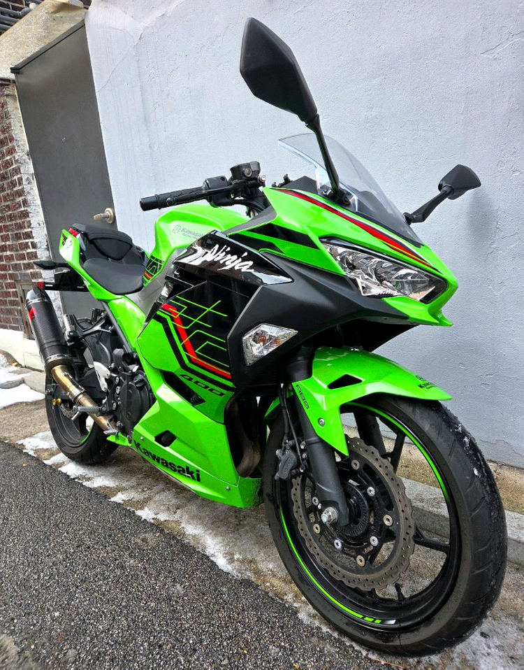 가와사키 닌자400 23년식 14@@@km 주행 사진 클릭하시면 자세히 보실 수 있습니다 소모품 전반적으로 많이 남아있으며 상태 양호합니다 점화플러그 교환 스로틀바디 청소 등 점검 마친지 얼마 안됐습니다 튜닝내역 아크라포빅 구변완료 데이토나 1구 usb포트 sp커넥트 휴대폰 거치대 후크볼트 절충문의 답변 안드립니다 라바페이 가능