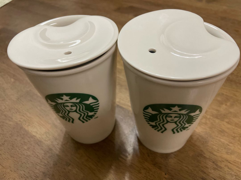 스타벅스 화이트 머그 컵 2개입니다. 사고 거의 쓰지않아서 매우 깨끗합니다 맨 마지막 사진에 작은 점이 있는데 살때부터 있던거에요! 일괄이에요