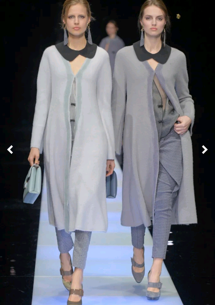아르마니의 퍼스트 라인인 조르지오 아르마니의 롱 가디건입니다. 롱 가디건 스타일이지만 코트로도 분류될 수 있는 디자인입니다. 아주 우아하고 예쁜 아르마니의 분위기가 돋보이는 옷으로 알파카 원단이라 따뜻합니다. 착용횟수 몇 번 안 되고 앉을 때는 벗고 앉아 깨끗 깔끔한 상태입니다. 이탈리아 42사이즈인데 니트이고 A라인으로 낭창하게 떨어지는 디자인이라 55ㅡ66 둘 다 가능할 듯 합니다 (길이 110cm, 가슴반품 42cm). 앞은 후크로 여밀 수 있는데 첫번째 후크는 오픈하는 게 더 라인이 예뻐보여서 가슴 반품도 더 여유 있습니다. 가격대는 400만원대였습니다. made in Italy 알파카 100%