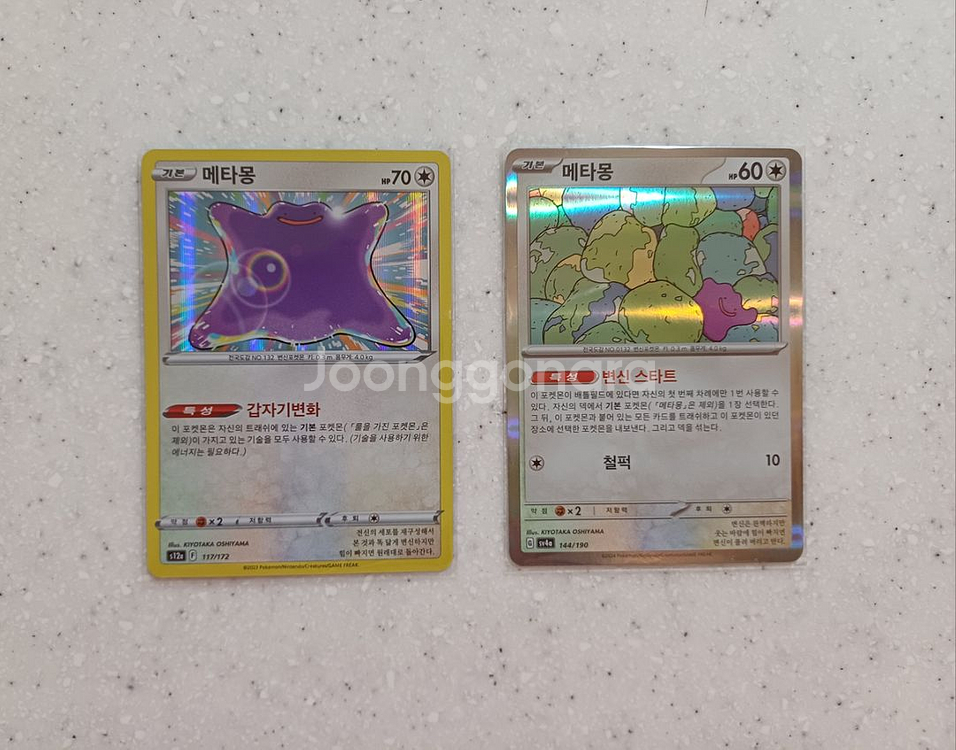 포켓몬카드 메타몽 판매합니다 1) s12a 117- 1만원 2) sv4a 144-2000원 *직거래-서울도봉구청,1호선방학역(2번출구도봉방향 개찰구가능)거래합니다. *우편600원, gs25.cu.세븐일레븐반값택배,준등기2000원, cj.롯데택배3500원 우체국택배4000원추가
