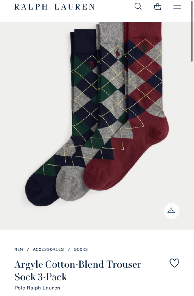 폴로랄프로렌 정품 미개봉 제품 남성 아가일 코튼 양말 3팩 아차산역 1번, 청담역 6번 직거래 일택, 반택 가능(택배비 별도) 안심 결제 가능
