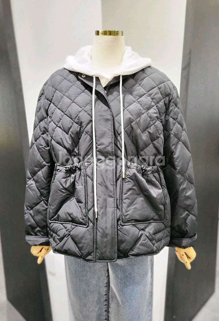 - 폴리에스터 100% ( 거위솜털 80% 깃털 20%) - 가벼우면서 보온성이 좋아 데일리 아이템 - 다이아몬드 퀼팅으로 클래식하면서도 부해 보이지 않은 핏 - 허리.포켓. 소매에 스트랩 있어 조절가능 - 지퍼와 스냅버튼의 이중 클로저 - 2022년 6월 사이즈 66 총장 60~66 가슴반품 57 어깨 46 소매 54
