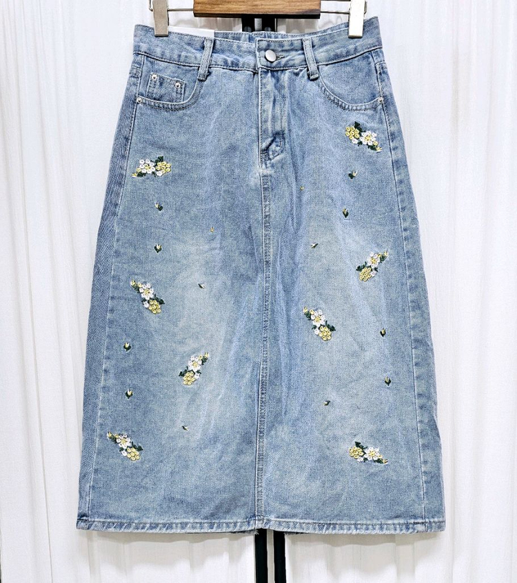 (택새상품)플라워자수 롱데님스커트 청치마