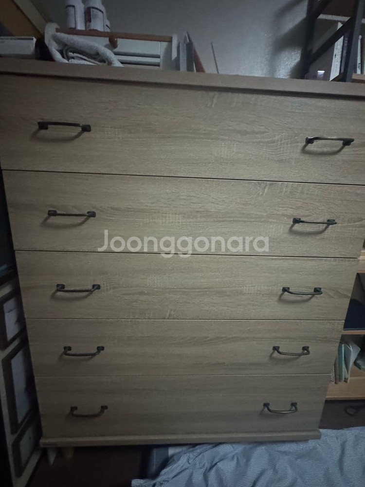 개인정보(거래정보)를 주고받는 행위는 사기에 노출될 수 있으므로 즉시 중고나라로 신고해 주세요리바트 브랜드의 5단 서랍장이에요. 베이지/브라운 컬러로 깔끔하고 실용적인 수납공간을 제공합니다. 사용감은 적음. 전체적으로 양호한 상태예요.