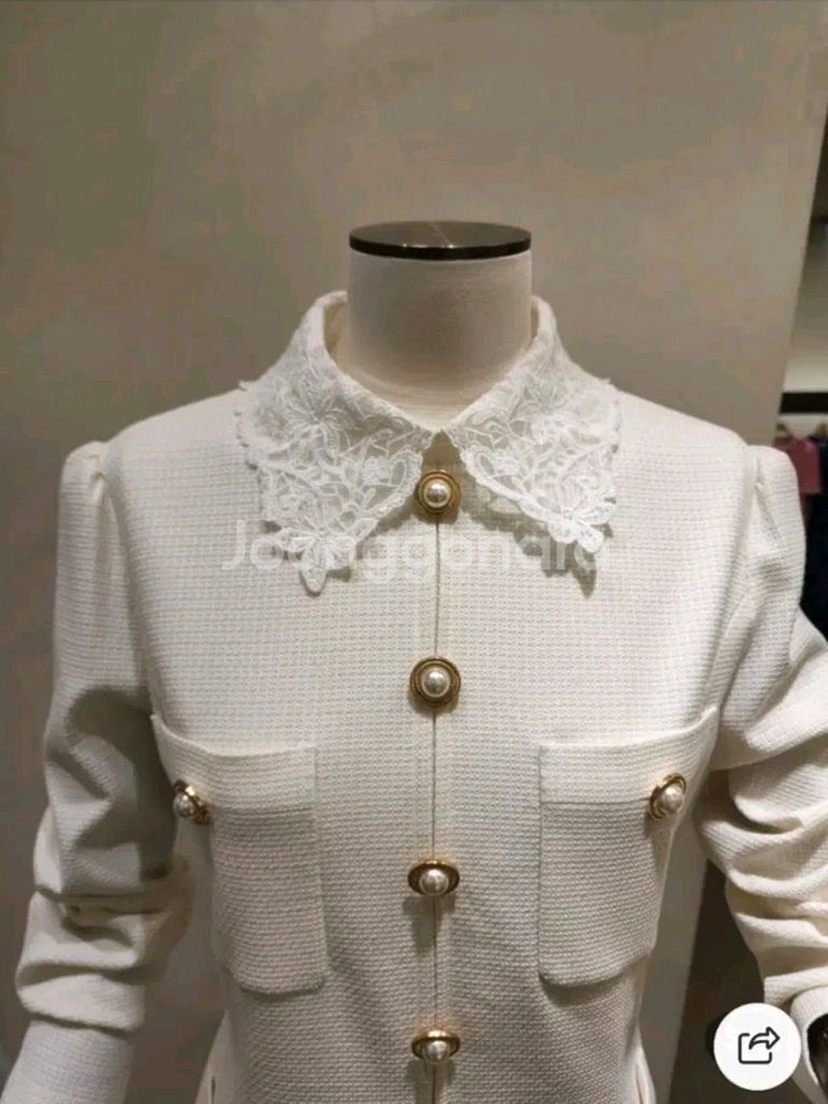 모조에스핀 와플원단 레이스카라 원피스 사이즈66 총장113센티 레이스카라원단, 금장단추 포인트로 단정하면서 고급스러운 디자인. 구입후 2회 착용 상태우수 출시가 89만원