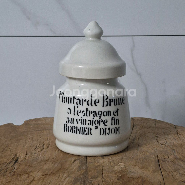 높이 17cm 프랑스 디종 지역의 전통이 느껴지는 빈티지 세라믹 머스타드 포트입니다. 부드러운 아이보리 톤의 도자기 위에 블랙 레터링이 더해져 절제된 우아함과 클래식한 프렌치 감성을 동시에 담고 있습니다. 표면에 적힌 “Moutarde Brune à l’estragon et au vinaigre fin – Bornier Dijon” 문구는 타라곤과 고급 식초를 사용한 브라운 머스타드를 의미하며 프랑스 미식 문화의 깊이를 엿볼 수 있는 요소입니다. 보통 뚜껑이 없는 경우가 많은데 함께 잘 보존되어왔으며 단정한 실루엣과 오브제 자체만으로도 존재감이 뛰어나 다이닝 공간, 촬영 소품 또는 프렌치 빈티지 컬렉션에 특히 적합합니다. 내부 유약면에 빈티지 세라믹 특유의 빙열이 있으며 오랜 시간에 따른 자연스러운 에이징 현상입니다. 외관 파손이나 사용에 영향을 주는 하자는 없습니다. 구매 가격에 보냅니다. *** 빈티지 제품 특성상 사용감, 세월감 있어요. 하자 발견시 말씀드리지만 제가 발견하지 못한 하자가 있을 수 있습니다. 교환/환불 불가. 빈티지 제품 이해하는 분만 구매해주세요. ***