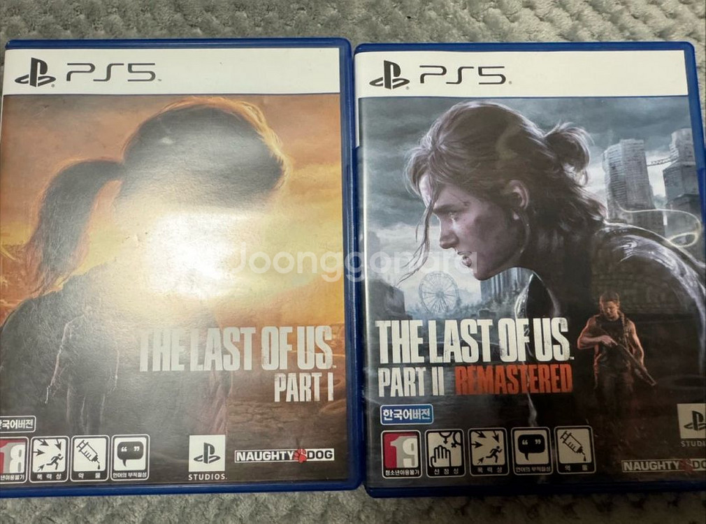 PS5용 라스트 오브 어스 파트1과 파트2 리메이스터드 게임 2개 세트입니다. 케이스 상태 양호하고 디스크도 깨끗해요. 인기 액션 RPG 시리즈 완전판으로 함께 즐기실 분 찾아요!