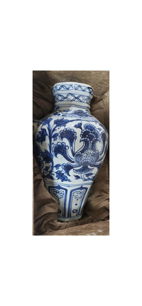 •상품번호 e-83 •사이즈 가로 약 17cm / 세로 약 17cm / 높이 약 31cm •작품설명 본 작품은 명·청대 제작으로 보이는 청화백자 사호로, 기형은 어깨가 풍만하고 하부로 갈수록 안정적으로 수렴되는 전형적인 사호 형식을 갖추고 있다. 전면을 가득 채운 화훼문은 청화 안료의 농담 변화를 활용해 입체감 있게 표현되었으며, 필선의 흐름과 문양 배치는 명·청대 민요 계열 백자의 특징을 보여준다. 어깨 양측에 부착된 수수 장식은 단순한 장식 요소를 넘어 실용성과 상징성을 함께 지닌 구성으로, 동시기 사호류에서 자주 확인되는 요소다. 유약은 전체적으로 고르게 입혀졌으며, 일부 자연스러운 유약 고임과 소성 흔적이 확인된다. 함께 전해진 목제 보관 상자는 국공내전 시기 피난 과정에서 사용된 것으로 전해지며, 내부 라벨과 봉인 흔적, 장기간 보관으로 인한 자연스러운 노후감이 남아 있다. 기물과 박스가 함께 전해진 점은 수장 이력 측면에서 주목할 만한 요소로, 단순한 장식용을 넘어 역사적 맥락을 함께 감상할 수 있는 작품이다. [유의사항] •결제후 취소,교환,반품은 불가합니다. •시대언급 및 내용은 판매자의 개인 견해 이므로, 진위여부보장이 불가합니다. 최종적인 판단은 각자의 안목으로 부탁드리며 법적 책임을 지지 않습니다. •미감정품으로 진위여부는 각자의 안목으로 판단 바랍니다.