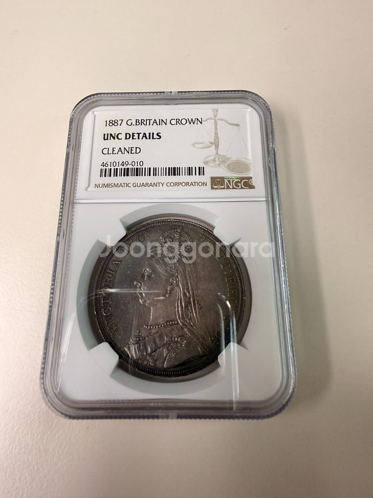 1887년 영국 크라운 은화입니다. NGC 인증이 함께 있어서 상태가 깨끗하고 좋습니다. 수집용으로 보관했던 제품이라 컬렉터분들께 추천합니다