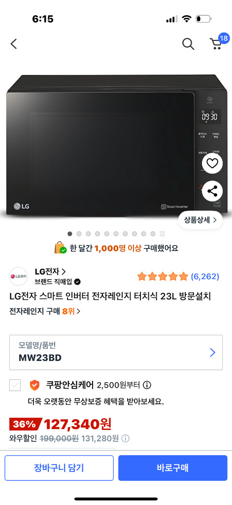 LG전자 스마트 인버터 터치식 전자레인지입니다. 23L 용량으로, 터치식 조작이 편리합니다. 깔끔한 블랙 색상으로 주방 인테리어에도 잘 어울립니다. 성격 엄청 급한 편인데 전자레인지 성능이 워낙 좋아서 조리시간 단축 가능합니다. 사용한지 1년 안 되었는데 이사 가게 되어 급처합니다. 신촌더이음 오피스텔 직접 오셔서 갖고 가셔야 합니다