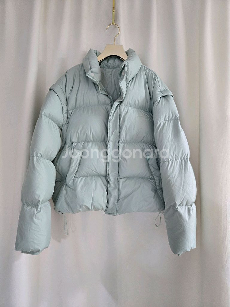 인스턴트펑크 숏패딩 소매 지퍼 분리로 베스트로도 가능해서 활용성 좋음~ - 색상은 민트, 사이즈는 3 - 충전재는 거위털 80%와 깃털 20%로 엄청 가볍고 부드러움~ 세탁전이지만 때탐외에 깨끗~ 가슴단면 65 총길이 63정도 교환환불 불가
