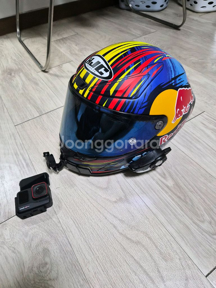 홍진 알파1 레드불입니다 사이즈는 m사이즈입니다 하이바 정말 이쁘며 상태도 좋습니다 투명쉴드랑 무슨 쉴드 비닐같은거도 드립니다 하이바 뒤에 윙도 같이 있습니다 블루쉴드는 사용감 좀 있고 핀락 끼워져있습니다 세나는 20s인거같은데 볼륨조절이 고장이 나고 사용감은 있지만 스피커랑 마이크 잘 됩니다 하이바에 인스타360프로 마운트도 설치되어있습니다 없는게 좋으시면 때면되용 인스타360은 판매완료 편하게 연락주세용