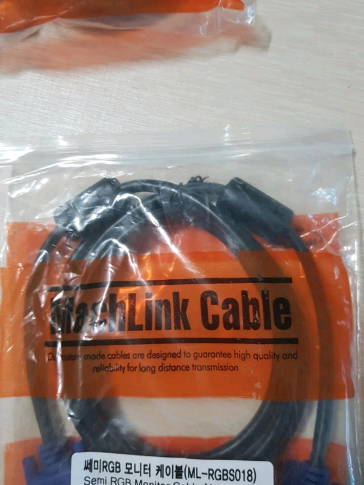 RGB 모니터용 케이블들이에요. 여러 종류의 케이블이 포함되어 있고 상태는 양호해 보입니다. RGB 조명 연동이나 추가 연결용으로 유용할 것 같아요.