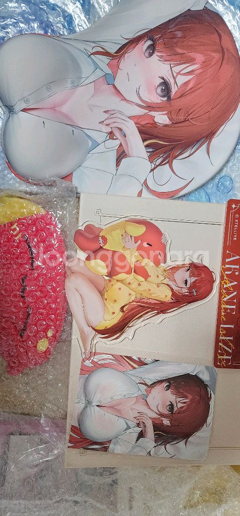 마우스패드 아크릴 안대 엽서 구성입니다 마우스패드 사진과 같이 옅게 눌린자국같은거 있습니다 마우스패드 위에 있던 플라스틱 포장만 개봉되있으며 미사용입니다 나머지는 개봉 전시품 입니다 연락주세요