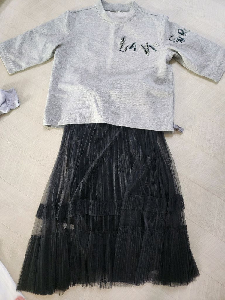 사진과 같아요 구매후 시착용 한번 후 걸어만 놓았어요 샤스커트와 티셔츠는 따로 코디하셔도 되세요 스커트가 좀 빛나보이게 나왔는데 완전 검은색이에요~ 구입후 외출한적은 없구요 집에서 시범착용해본게 다에요~ 사이즈는 아마 55분들 이쁘게 입으실거같아요~ 일괄판매할게요^^ 환불 취소 안돼니 사진잘보시구 구매부탁드려요 편의점 반값택배 포함할게요~