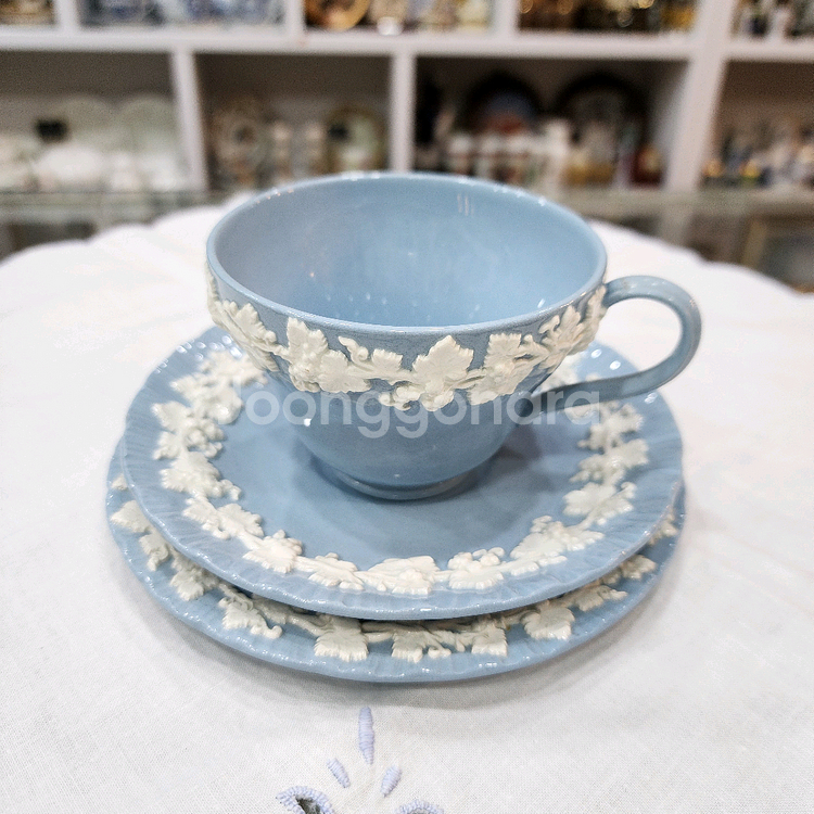 영국 빈티지 그릇의 대명사, 웨지우드 퀸즈웨어(Queens Ware) 판매합니다. 💰 판매 가격: 180,000원 가장 인기 있는 라벤더 블루 컬러이며, 컵/소서/브레드 접시가 모두 포함된 '트리오 세트' 구성입니다. ✨ 상품 포인트 *구성: 커피잔 1 + 소서 1 + 브레드 접시 1 (총 3피스) *상태: 칩(깨짐), 크랙(금), 빙열(미세 갈라짐) 없이 아주 깨끗한 A급 컨디션입니다. *특징: 입체적인 화이트 포도 넝쿨 양각이 살아있어 실물이 훨씬 우아합니다. *생산: 메이드 인 잉글랜드(Made in England) 정품 📍 거래 안내 빈티지 특성을 잘 이해하시는 분이 구매하셨으면 좋겠습니다.