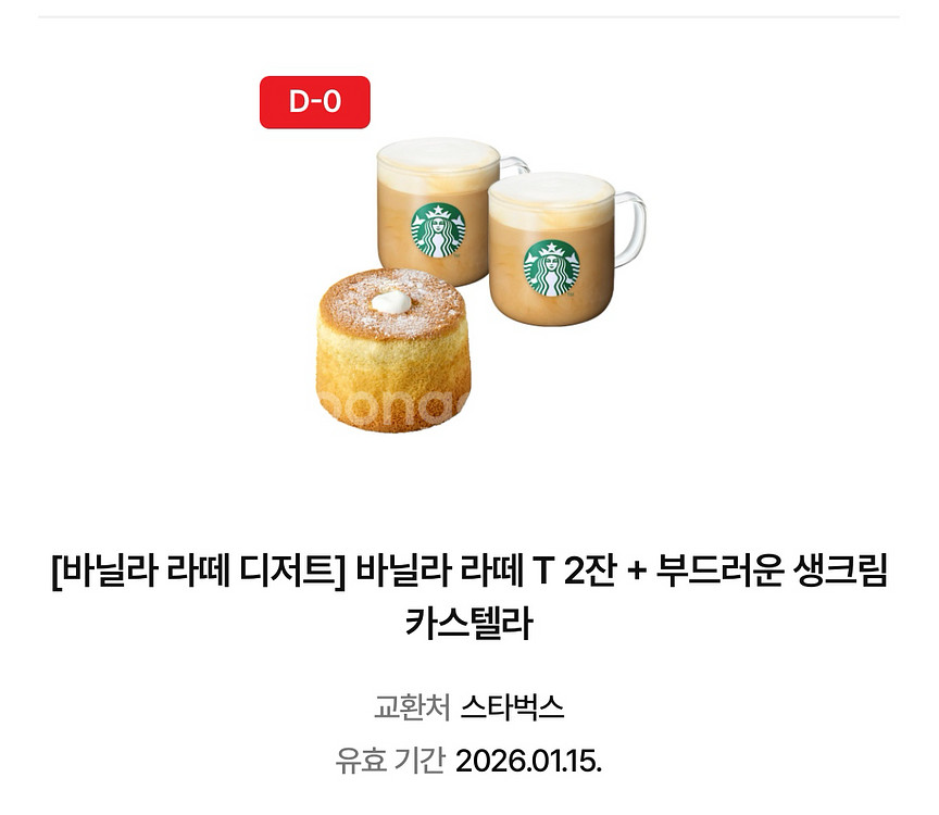 스타벅스 바닐라라떼 2잔 + 카스테라 세트 급처