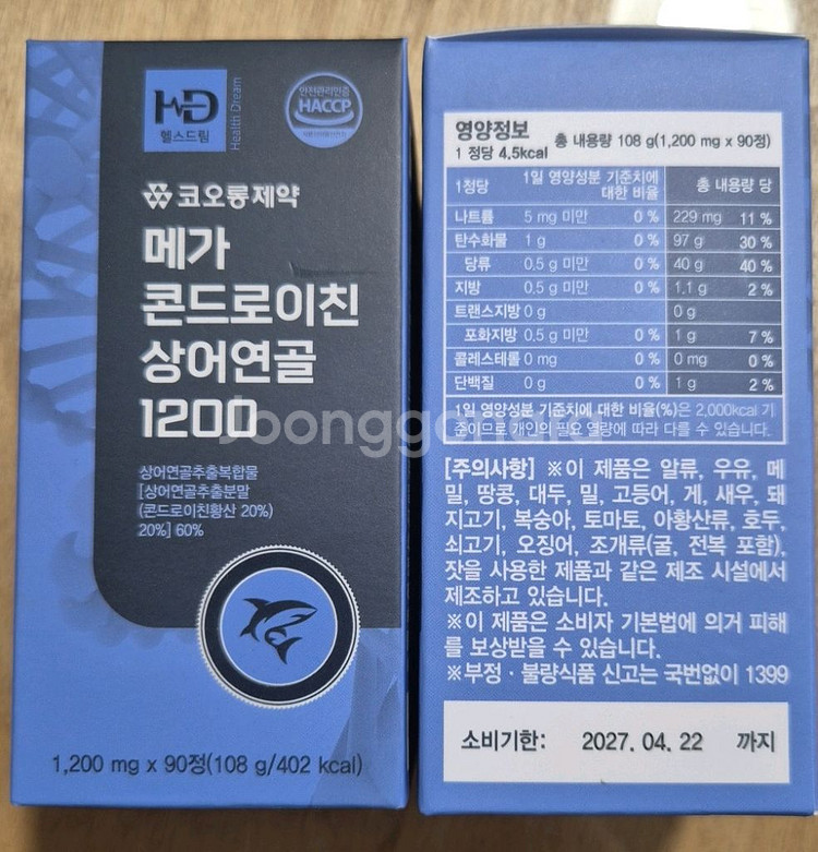 메가 콘드로이탄 상어연골 1200 건강보조식품이에요. 박스 상태 양호하고 미개봉 새제품입니다. 관절 건강에 좋은 영양제로 추천해요! 2박스입니다