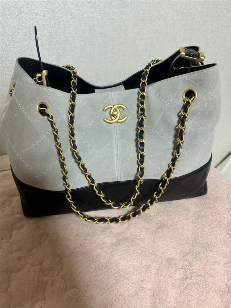 샤넬 공방백입니다 스웨이드와 가죽 투톤으로 되어있고 금장 체인이 포인트입니다 새상품입니다 이너백 있습니다. 블랙주아에서 구매 (최고퀄만취급)