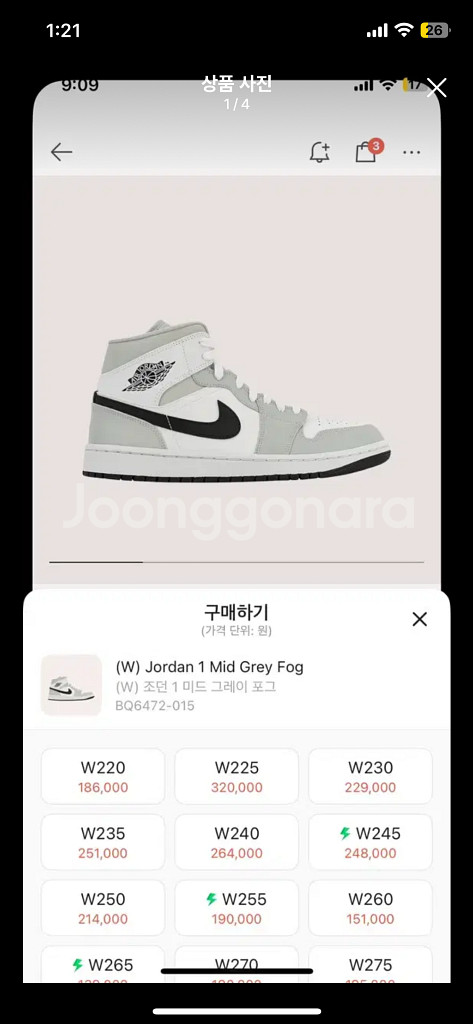 조던 1 미드 그레이 포그 235