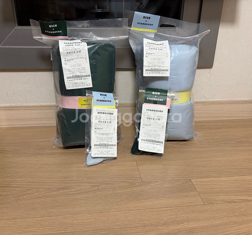 안녕하세요~ MSGM x 스타벅스 콜라보 블랭킷과 양말 4종 세트 입니다. 1세트 미개봉 새상품 이므로 그대로 비닐 포장되어 있습니다. 일괄로 78,000원에 판매 해요~ 개별 판매 ❌ 교환 영수증 포함 ⭕️ - 색상은 블랭킷과 양말 파스텔톤의 그린과 블루 두 가지 색상으로 총 4종 구성되어 있습니다. 그린 블랭킷 뒤면에 살짝 긂힘이 조금 있지만 예민하지 않은 분 한테 선호 합니다. 사진에 참고~ - 소재는 폴리에스터 100%로 부드럽고 따뜻합니다 - 블랭킷 사이즈는 160 cm x 100 cm입니다. 직거래: 명일역~ 미사역 시간이 맞으면 개찰구에서 거래 가능~ 위치는 상일동역 ~강일역 인근 입니다. 비대면 문 고리 거래 가능~ 채팅 주세요~ 중고나라 페이❎안전결제 가능~ 또는 현금또는 계좌입금 만 받아요~ 일반택배비 +4,500원 반값,알뜰 택배(GS,CU) +2,600 둘다 가능~ 무게가 있어서 택배가 좀 나와요~ (cu알뜰 ,gs25 반값) 택배 분실 책임 ❎ 신중하게 거래 부탁 드려요~ (거래 파기 금지,교환 ,환불 불가)
