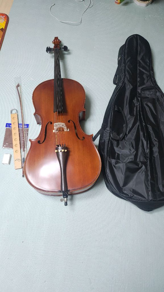 파가니니 첼로200 4/4 원가 100정도 합니다 뒤판 무늬가 진짜 이쁩니다 테두리부분 스크래치 사용감 정도는 있으나 크랙은 없어요 브릿지 새로 교체 했고요. 줄은 텅스텐 입니다 야가현보다 훨씬 비싼줄입니다 활 새것이고요 티자 송진 드립니다 가방 소프트케이스 새것 드립니다 서울 수도권 다마스퀵 3만 제주제외 전국 고속택배 5만입니다 의정부 호원동 010 9397 9814