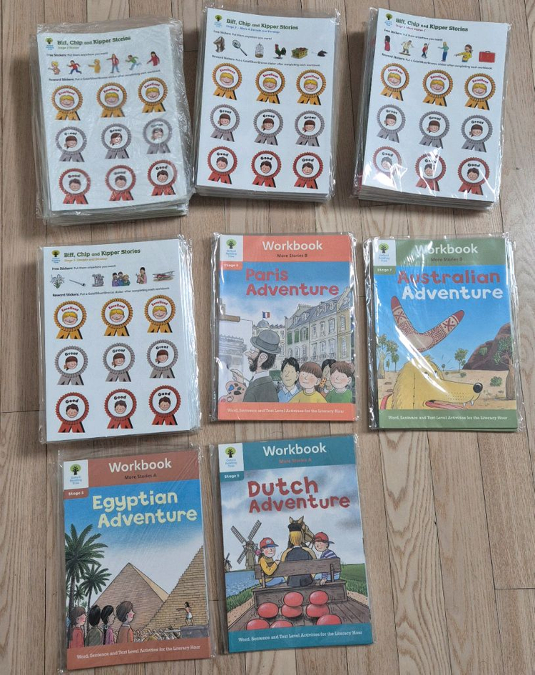 ort 정품 워크북 2-9 단계 입니다 전 권 새상품 입니다 <책 아니고 워크북 이에요> stage 2 47권(1권 사용) stage 3 36권 stage 4 36권 stage 5 36권 stage 6 18권 stage 7 18권 stage 8 12권 stage 9 12권 한 팩에 6권씩 들어있어요 2단계 1권 사용 외 전권 새상품 풀세트 입니다 에놀x 직거래 천안 입니다. 개인 거래로 구매 후에는 환불 불가합니다 원하시는 사진 있으면 더 보내드려요 택포