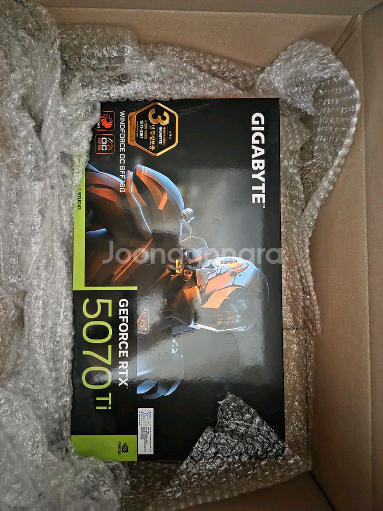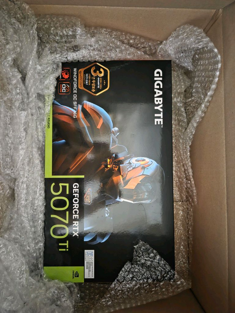 1월 15일 구매한 GIGABYTE 지포스 RTX 5070 Ti WINDFORCE OC SFF D7 16GB 팝니다 미개봉 상태, 택배 온 그대로 드리며 영수증도 출력하여 드립니다. 직거래 장소는 서울 오류동역 또는 온수역, 역곡역 주변에서 합니다. 1개남았습니다 좀 가까운곳은 가는김에 드릴수도 있어요~