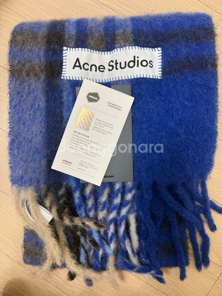 아크네 스튜디오 모헤어 타탄 머플러 일렉트릭 블루 베이지 오염·하자 없음, 보풀 거의 없는 최상 컨디션 정품 (사진 요청 시 추가 전송 가능) 선물 받아 짧게 착용 후 보관만 했습니다. 컬러 포인트로 추천 "모델 착용컷은 핏 참고용이며, 실제 판매 제품은 실물 사진 참고 바랍니다."